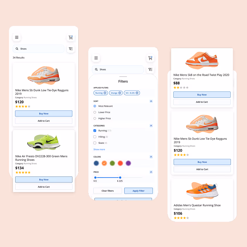 Mobile shoppers were overwhelmed by product choices. We fully rebuilt the filtering experience, using clear categories, intuitive visual chips, and smarter defaults. Users found products faster, decreasing session drop-off.